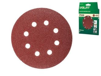 Шлифлист 125мм круг Р320 д/дерева 8 отв. 10шт. ВОЛАТ(круг абразивный шлифовальный перфорированный)