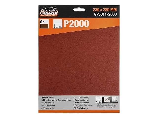 Шлифлист 230х280мм Р2000 бум.осн. 5шт. GEPARD (GP5011-2000)(бумага наждачная абразивная, лист шлифовальный абразивный, шлифшкурка)