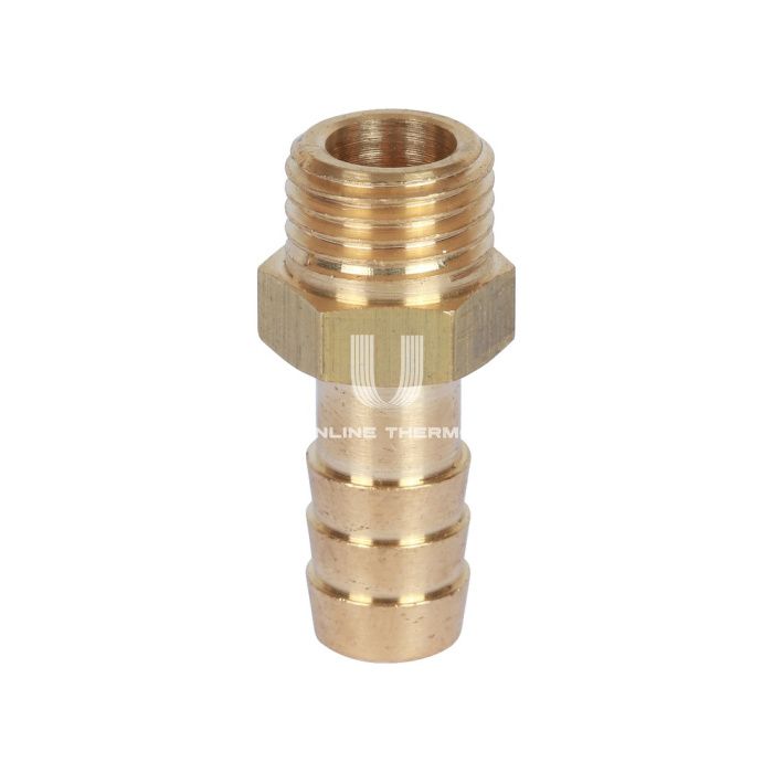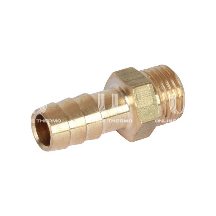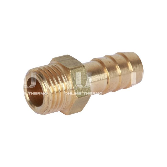 Штуцер латунный с наружной резьбой итальянского производителя Stout представляет собой присоединительный фитинг, у которого с одной стороны располагается наружная присоединительная резьба, а с другой стороны находится оребренная трубка (штуцер). С наружной части фитинга имеется специальный участок под шестигранник для монтажа с помощью гаечного ключа. Штуцеры используют для спуска жидкости или газа из какой-либо ёмкости или трубы, например, с целью сброса избыточного давления. При помощи данного изделия можно легко перейти с резьбового вентиля или шарового крана на резиновый шланг, используемый для полива, или отводить воду из фильтра тонкой очистки при промывке. Технические характеристики: материал: латунь; рабочая среда: вода, водный раствор гликолей до (30%); диапазон рабочих температур, °С: –30 до +120; тип резьбы: наружная; размер присоединительной резьбы, дюйм: 1/4.