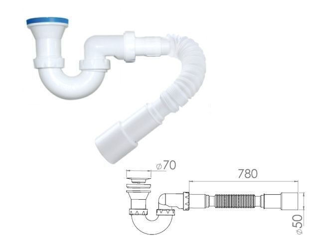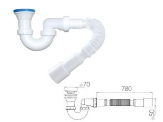 Сифон для душевого поддона U-образный h 130mm, выпуск 70 мм, с гибкой трубой 1 1/2' - 40/50мм, AV