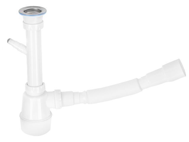 Сифон для кухни с выпуском 70мм, с отводом для стир. маш., с гибкой трубой 1 1/2' - 40/50, AV