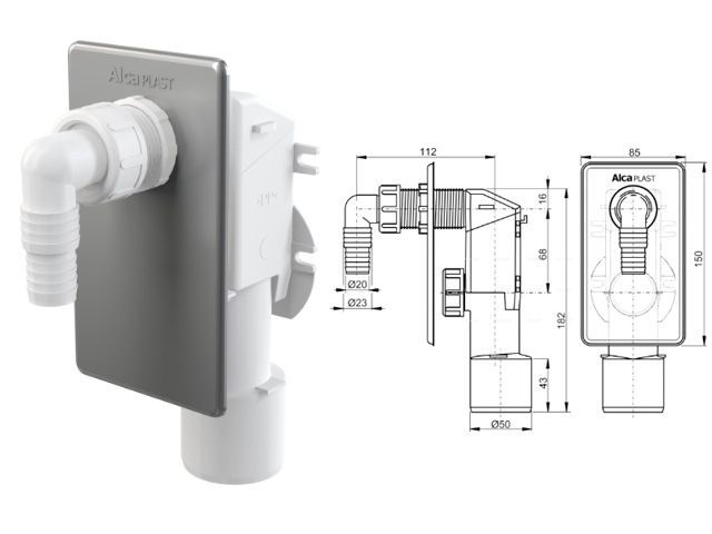 Сифон для стиральной машины под штукатурку хромированный, Alcaplast