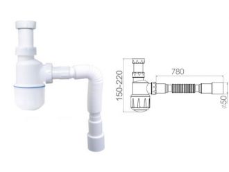 Сифон для умывальника бутылочного типа без выпуска Гайка под выпуск 32 мм Выход в канализацию 1 14 - 4050 мм