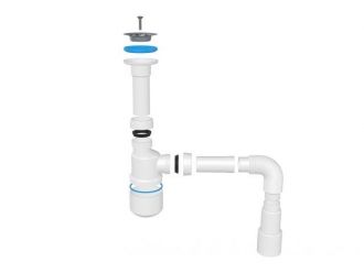 Сифон для умывальника бутылочного типа с литым выпуском 64 мм Выпуск и винт из нерж. стали 304 Длина винта 65 мм Выход в канализацию: гибкая труба 1 14 - 4050 мм