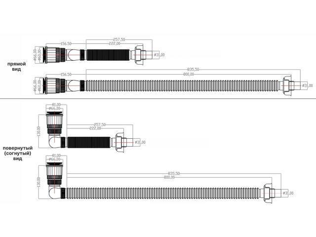 + Сифон с выпуском;