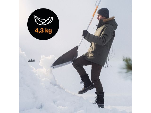 Ширина 740 мм. Длина 1495 мм. Вес 4,3 кг. Движок (скрепер-волокуша) отлично подходит для быстрой и эффективной уборки большого количетсва снега на открытом пространстве, вокруг дома, парковочного места или гаража. Длинная рукоятка из стальной трубы для эффективной работы. Оранжевый отражатель на рукоятке для безопасной работы в темное время суток . В конструкции ковша используется специальный пластик, устойчивый к перепадам температуры . Ковш усилен стальной кромкой . Выпуклые ребра на ковше не позволяют мокрому снегу прилипать. Гарантия: 2 года