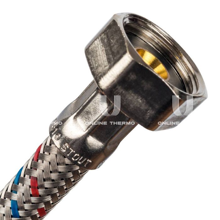 Для того, чтобы соединить линию водоснабжения с устройством подачи, чаще всего используется гибкая подводка для воды – прочный армированный шлаг с износостойкой оплеткой. Такая подводка относится к группе расходных материалов, так как довольно часто выходит из строя. К тому же у нее шире спектр рабочих температур и она устойчива к изнашиванию, сжатию, излому и горению. Внутренний шланг гибкой подводки STOUT изготовлен из экологичного материала - EPDM (пищевой). EPDM- материал повышенной плотности (монолитный), обеспечивает высокую износоустойчивость (большее количество циклов работы). Латунь, используемая в производстве гибкой подводки - пищевая (латунь специальная, ЛС), в ней меньшее содержание Zn, Pb. Высокое качество запрессовки втулки из нержавеющей стали к шлангу дает 100% защиту от протечек.