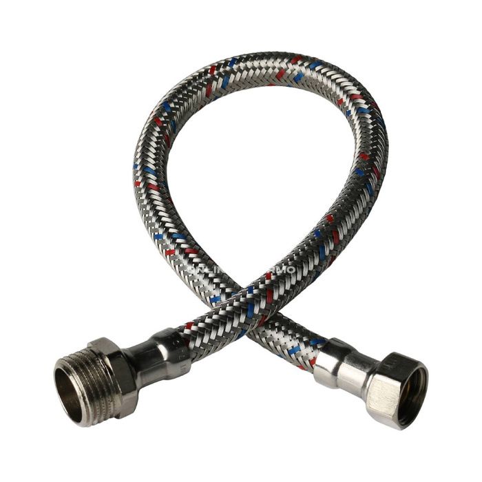 Для того, чтобы соединить линию водоснабжения с устройством подачи, чаще всего используется гибкая подводка для воды – прочный армированный шлаг с износостойкой оплеткой. Такая подводка относится к группе расходных материалов, так как довольно часто выходит из строя. К тому же у нее шире спектр рабочих температур и она устойчива к изнашиванию, сжатию, излому и горению. Внутренний шланг гибкой подводки STOUT изготовлен из экологичного материала - EPDM (пищевой). EPDM- материал повышенной плотности (монолитный), обеспечивает высокую износоустойчивость (большее количество циклов работы). Латунь, используемая в производстве гибкой подводки - пищевая (латунь специальная, ЛС), в ней меньшее содержание Zn, Pb. Высокое качество запрессовки втулки из нержавеющей стали к шлангу дает 100% защиту от протечек.