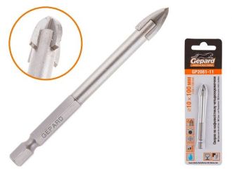 Сверло по кафелю/стеклу 10х100мм четырехкромочное шестигр. GEPARD (GP2081-11)(Impact, по керамической плитке, крестовая пластина)