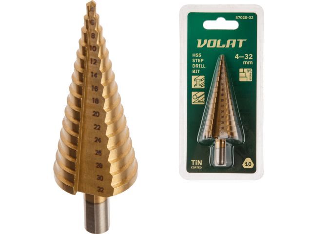 Сверло по металлу ступенчатое 4-32 мм HSS TIN ВОЛАТ(прямой профиль)