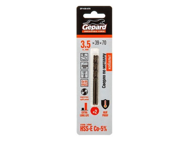 Сверло по металлу ц/х 3.5х39х70 мм HSS-Co, комплект из 2-х шт GEPARD(кобальт 5%)