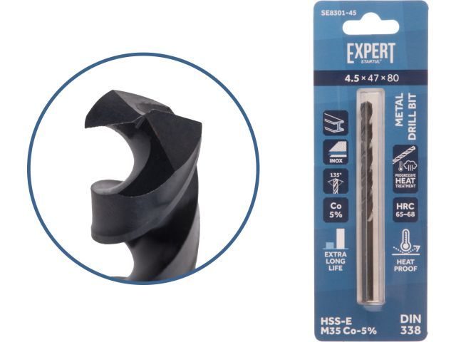 Сверло по металлу ц/х 4.5х47х80 мм HSS-Co Black EXPERT STARTUL(кобальт 5%)