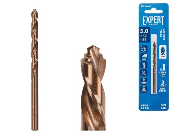 Сверло по металлу ц/х 5.0х52х86 мм HSS-Co EXPERT STARTUL(кобальт 5%)