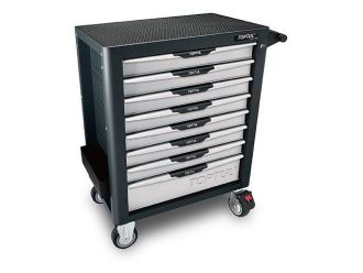 Тележка для инструмента 8 секций TOPTUL (TCBL0803) 7 небольших ящиков размером 578x378x75 1 больших ящика размером 578x378x155 Нагрузка на ящик 45 кг. Нагрузка на боковой ящик 45 кг. Большая дугообразная ручка с улучшенной эргономикой. Нагрузка на тележку 680 кг. Тележка оснащена системой анти-опрокидывания Ящики на подшипниковых направляющих с функцией автоматического возврата и выдвижении 100% Ключ для замка складной 2 шт. С верху уложен противо-скользящий коврик толщиной 10 мм. Тележка оснащена боковой перфорированной панелью для установки опций. 2 поворотных колеса с тормозом и 2 не поворотных. Тележка окрашена порошковой краской.