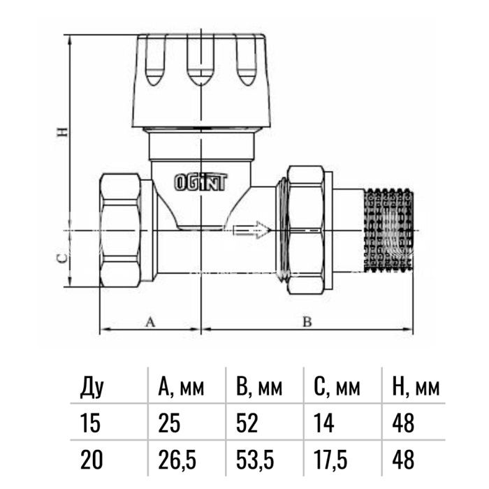 Термостатические клапаны Ogint предназначены для автоматического или ручного регулирования расхода теплоносителя с температурой до 120°C и рабочим давлением до 10 бар включительно через отопительный прибор водяной системы отопления. В качестве рабочей среды, помимо воды, могут использоваться другие среды, нейтральные по отношению к материалам клапана. Регулирование потока теплоносителя может осуществляться: вручную (не рекомендуется), с помощью комплектного регулировочного колпачка; автоматически, с помощью термостатической головки (приобретается отдельно) в зависимости от температуры внутреннего воздуха в помещении; автоматически, с помощью электротермического сервопривода (приобретается отдельно); по команде управляющего автоматического устройства управления (комнатный термостат, контроллер, блок общедомовой автоматики и пр.). Использование термостатических клапанов с термостатическими элементами позволяет автоматически поддерживать температуру воздуха в помещениях на заданном уровне с точностью до 1°C. Технические характеристики: испытательное давление, бар: 16; допустимая температура окружающей среды, ºС: от +5 до +55; допустимая влажность окружающей среды, %: до 80; максимальный перепад давления на клапане, бар: 1.