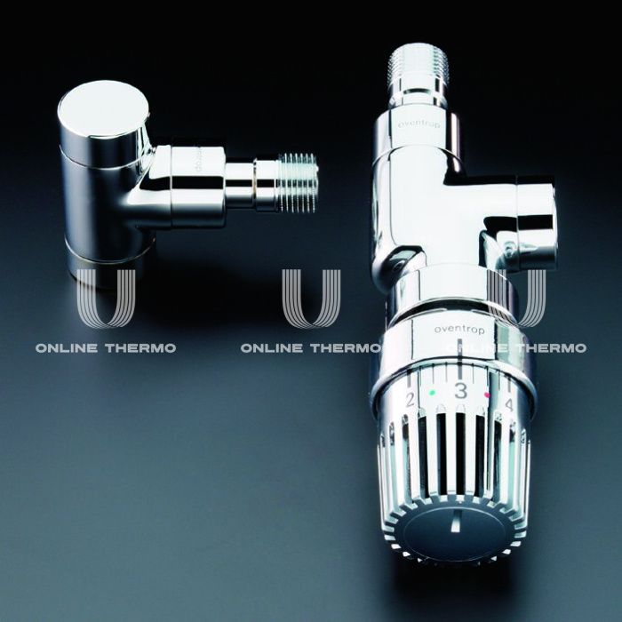 Термостатический клапан (терморегулятор) Oventrop 1163252, DN15, 1/2" ВР-НР, серия E, осевой, хромированный, с преднастройкой