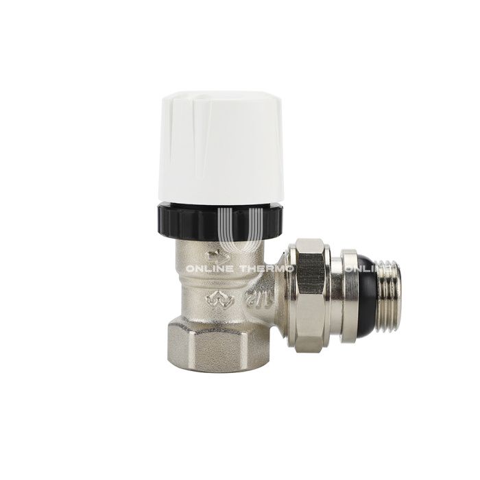 Термостатический клапан (терморегулятор) Varmega VM10411, 1/2" ВР-НР, угловой, с самоуплотняющимся полусгоном, без преднастройки