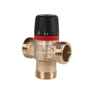 Термостатические смесительные клапаны Rommer это регуляторы температуры прямого действия, работающие без использования дополнительной энергии. Предназначены для контроля и поддержания заданной температуры в системах горячего водоснабжения, а также отопления с постоянной температурой теплоносителя, например, типа «теплый пол». Термостатический смесительный клапан имеет два входных штуцера для подвода смешиваемых сред и один выходной. В клапан встроен перенастраиваемый термостатический элемент, поддерживающий в зависимости от модификации клапана температуру теплоносителя в диапазонах 20-43°С, 30-65°С или 35-60°С. Технические характеристики: регулируемая среда: вода, водный раствор гликолей до 30%; точность регулирования, °С: ±2; максимальный перепад давлений между входами клапана ΔР, бар: 2; температура транспортировки и хранения, °С: от -20 до +50.