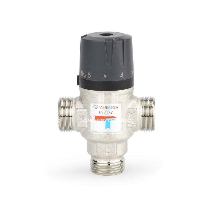 Термостатический смесительный клапан Varmega VM17203 НР 1", Kvs 1.6, PN 10, смешение в бок, 30-65°С