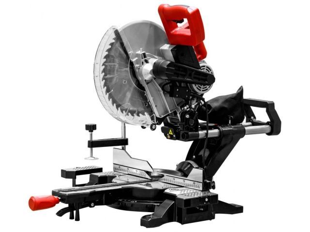 - На пиле установлен мощный двигатель с ременной передачей, что в свою очередь делает его более надежным и менее шумным, имеется система пылеудаления, лазерный указатель для более точного реза, металлические скользящие полозья, плавный ход реза, система быстрого зажима заготовки, точный рез. Быстрая регулировка глубины и ширины реза. Правыйлевый наклон пильной головы. А так же наличие ребер жесткости в основании придает дополнительную мощность конструкции, что очень важно для торцовочной пилы.