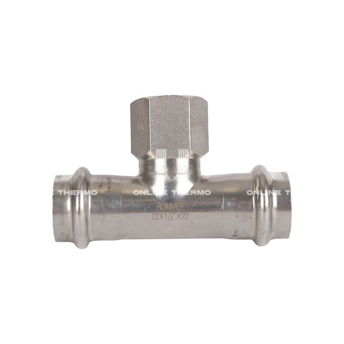 Тройник двураструбный переходной с внутренней резьбой Rommer RSS-0015-002212, 1/2"?22 мм, пресс-обжим
