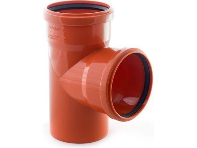Тройник канализационный для трубы диаметром 160 мм. Имеет выход под трубу диаметром 110 мм под углом 87 градусов. Применяется при монтаже систем наружной канализации.