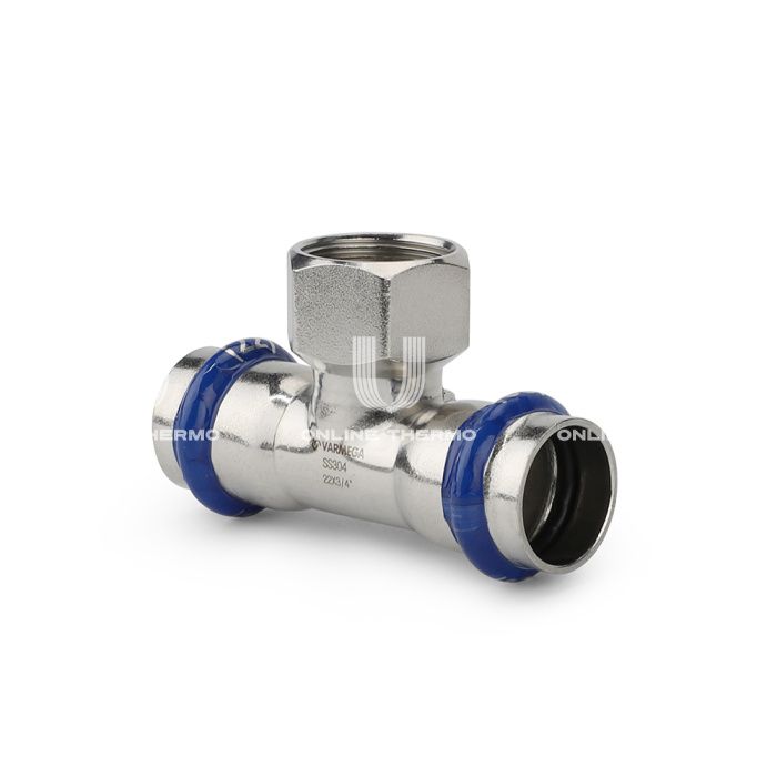 Тройник с внутренней резьбой Varmega Inox Press с двух сторон имеет раструбное соединение для труб, а с третьей стороны фитинга находится внутреннее резьбовое соединение. Данный фитинг позволяет присоединить к трубопроводу различные резьбовые элементы (краны, фильтры и т. п.), также дает возможность подключиться к другому типу трубопровода. Для получения надежного неразъемного соединения трубы и фитинга потребуется специальный пресс-инструмент с насадками типа профиль «V». Трубы и пресс-фитинги из нержавеющей стали серии Varmega Inox Press предназначены для транспортирования жидкостей, применяемых в системах питьевого водоснабжения, низкотемпературных и высокотемпературных системах отопления и системах охлаждения. Трубы и фитинги могут применяться в качестве технологических трубопроводов для транспортирования жидкостей и газов, не агрессивных к материалу труб и уплотнителей фитингов. Особенности применения: - Запрещается использовать фитинги системы с уплотнительными кольцами из EPDM на трубопроводах, транспортирующих жидкие углеводороды. В таких случаях необходимо заменить кольца из EPDM на кольца из FPM (Viton). Кольца FPM приобретаются отдельно. - Запрещается использовать трубы и фитинги системы Varmega Inox Press в атмосфере, насыщенной парами хлора (бассейны с хлорированием воды и т. п.). Содержание хлоридов в рабочей среде не должно превышать значений, указанных в техническом паспорте. - Непосредственное соединение элементов из нержавеющей стали с оцинкованной сталью (арматура, соединители) может вызвать коррозию оцинкованной стали, для предотвращения коррозии необходимо применять разделяющий элемент из латуни или бронзы с длиной не менее 50 мм. - Трубопроводная система Varmega Inox Press включает в себя трубы из нержавеющей стали, которые соединяются между собой и присоединяются к арматуре/приборам с помощью пресс-фитингов из нержавеющей стали. - Монтаж фитингов производится пресс-инструментом с насадками типа профиль «V». - Фитинги стандартно комплектуются уплотнителями O-Ring из этилен-пропилен-диенового каучука EPDM. - Отдельно можно приобрести набор уплотнительных колец из FPM (Viton). Замена на кольца из Viton повышает температурную и химическую стойкость системы. Пресс-фитинги Varmega Inox Press имеют два уникальных уровня индикации: - Все раструбные пресс-фитинги оснащены синей термоусаживаемой пленкой, которая остается на неопрессованном фитинге и слетает, если фитинг уже опрессован. - Все уплотнения EPDM, установленные в пресс-фитинги Varmega Inoxpress, имеют специальную конструкцию, которая будет показывать неопрессованные соединения, они будут не герметичны (протекать) под давлением от 0,1 до 6,0 бар. Благодаря такой конструкции все неопрессованные соединения выявляются на этапе испытаний и легко исправляются без потери времени.