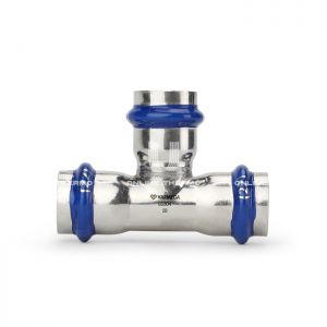 Тройник раструбный Varmega Inox Press равносторонний, используется для соединения труб равных диаметров. Для получения надежного неразъемного соединения трубы и фитинга потребуется специальный пресс-инструмент с насадками типа профиль «V». Трубы и пресс-фитинги из нержавеющей стали серии Varmega Inox Press предназначены для транспортирования жидкостей, применяемых в системах питьевого водоснабжения, низкотемпературных и высокотемпературных системах отопления и системах охлаждения. Трубы и фитинги могут применяться в качестве технологических трубопроводов для транспортирования жидкостей и газов, не агрессивных к материалу труб и уплотнителей фитингов. Особенности применения: - Запрещается использовать фитинги системы с уплотнительными кольцами из EPDM на трубопроводах, транспортирующих жидкие углеводороды. В таких случаях необходимо заменить кольца из EPDM на кольца из FPM (Viton). Кольца FPM приобретаются отдельно. - Запрещается использовать трубы и фитинги системы Varmega Inox Press в атмосфере, насыщенной парами хлора (бассейны с хлорированием воды и т. п.). Содержание хлоридов в рабочей среде не должно превышать значений, указанных в техническом паспорте. - Непосредственное соединение элементов из нержавеющей стали с оцинкованной сталью (арматура, соединители) может вызвать коррозию оцинкованной стали, для предотвращения коррозии необходимо применять разделяющий элемент из латуни или бронзы с длиной не менее 50 мм. - Трубопроводная система Varmega Inox Press включает в себя трубы из нержавеющей стали, которые соединяются между собой и присоединяются к арматуре/приборам с помощью пресс-фитингов из нержавеющей стали. - Монтаж фитингов производится пресс-инструментом с насадками типа профиль «V». - Фитинги стандартно комплектуются уплотнителями O-Ring из этилен-пропилен-диенового каучука EPDM. - Отдельно можно приобрести набор уплотнительных колец из FPM (Viton). Замена на кольца из Viton повышает температурную и химическую стойкость системы. Пресс-фитинги Varmega Inox Press имеют два уникальных уровня индикации: - Все раструбные пресс-фитинги оснащены синей термоусаживаемой пленкой, которая остается на неопрессованном фитинге и слетает, если фитинг уже опрессован. - Все уплотнения EPDM, установленные в пресс-фитинги Varmega Inoxpress, имеют специальную конструкцию, которая будет показывать неопрессованные соединения, они будут не герметичны (протекать) под давлением от 0,1 до 6,0 бар. Благодаря такой конструкции все неопрессованные соединения выявляются на этапе испытаний и легко исправляются без потери времени.