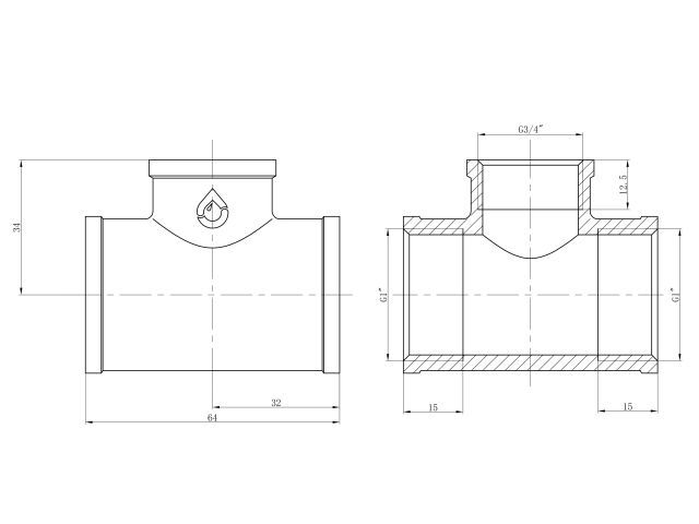 Тройник ред. 1' вн. х 3/4' вн. х 1' вн., AV Engineering (инд. упак.)(Латунь, макс. 16 бар, макс. 110 °С)