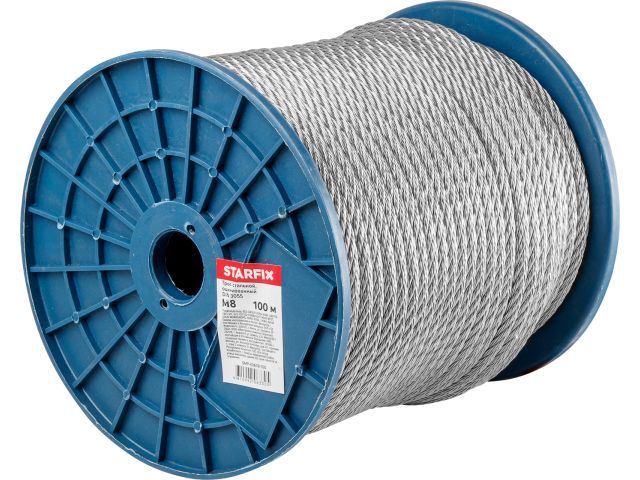 Трос стальной, оцинк. М8 DIN 3055 (бухта 100 м) STARFIX
