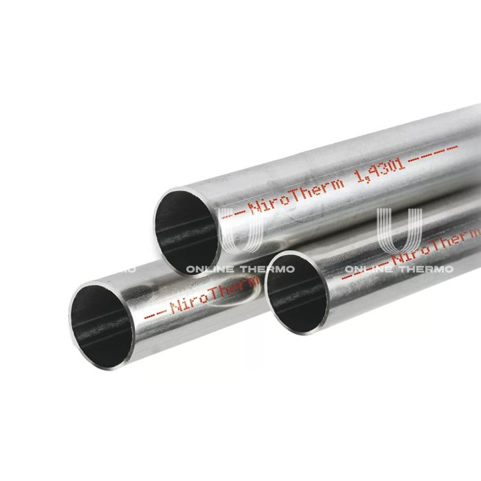 Системные трубы NiroTherm, с оптимизированной толщиной стенок, шовные - сваренные методом WIG, закалённые для повышения коррозионной стойкости, материал № 1.4301 по DIN EN 10088, изготовлены по DIN EN 10312. С маркировкой, выполненной шрифтом красного цвета. Не рекомендованы для водопроводов питьевой воды. Области применения: отопление; технические жидкости; охлаждение; сжатый воздух (масло ? 25 mg/m?); трубопроводы системы охлаждения; инертные газы; технические газы.