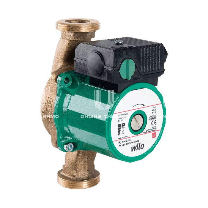 Циркуляционные насосы серии Wilo Star-Z используются для перекачивания питьевой/технической воды и жидкостей на объектах, связанных с продуктами питания. Циркуляционные насосы серии Star-Z рассчитаны специально на эксплуатацию в системах циркуляции питьевой воды. Благодаря подбору материалов и конструкции все детали насосов устойчивы к коррозии в питьевой воде. Насос состоит из гидравлической части, электродвигателя с мокрым ротором и клеммной коробкой. В электродвигателе с мокрым ротором все движущиеся детали соприкасаются с перекачиваемой жидкостью, в том числе и ротор электродвигателя. В использовании подвергающегося износу уплотнения вала нет необходимости. Перекачиваемая жидкость смазывает подшипники скольжения и охлаждает подшипники и ротор. Реле защиты электродвигателя не требуется. Даже максимальный ток перегрузки не может повредить электродвигатель. Электродвигатель также является устойчивым к токам блокировки. Технические характеристики: максимальное рабочее давление: 10 бар; минимальная температура перекачиваемой жидкости: 2°C; минимальная температура окружающей среды: 0°C; максимальная температура окружающей среды: 40°C.