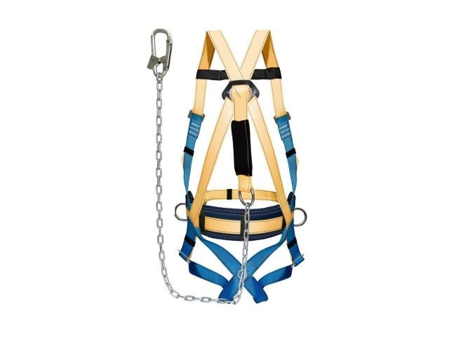 Пояс строительный лямочный ППД строп аГ. Страховочная система с наплечными и набедренными лямками со стропом из металлической цепи с амортизатором. Данная система является принадлежностью личного снаряжения, используется в качестве страховки рабочего на высоте в процессе производства строительных, монтажных, ремонтных и восстановительных работ. Применение: для останова падения работающего при срыве с высоты. Состоит из привязи ремня с пряжкой, наплечных и набедренных лямок, кушака, двух D-колец на поясе (для удержания и позиционирования) и одного на спине и страховочного стропа из металлической цепи с амортизатором. Привязь упакована в водонепроницаемый пакет и содержит паспорт и инструкцию по применению. Количество точек крепления 3 шт. Длина кушака 70 см Высота кушака 10 см Стандартный размер 44-50 (S, M, L) Обхват пояса 740 - 1 440 мм Рост до 2,0 м Обхват ног до 100 см Длина стропа 1,80 м - 50 мм Кол-во монтажных карабинов 1 шт. Раскрытие карабинов 125 мм Амортизатор рывка Да Статическая нагрузка 15 кН (1500 кгс) Срок годности 5 лет Гарантийный срок 2 года Соответствие ГОСТ Р ЕН 358-2008, ГОСТ Р ЕН 361-2008, ТР ТС 0192011