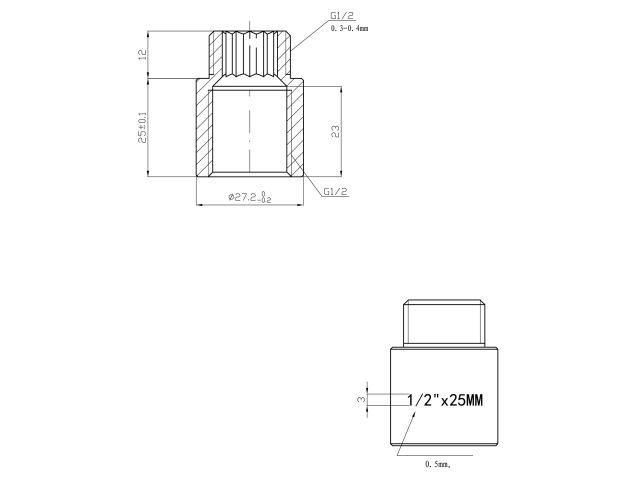 Удлинитель 1/2' вн.-нар. х 25 мм, AV Engineering (инд. упак.)(Латунь, макс. 16 бар, макс. 110 °С)