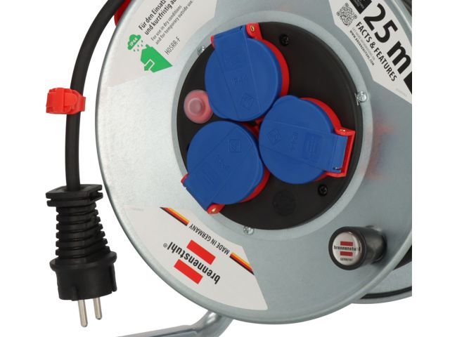 Удлинитель на катушке 25м (3 роз., 3.3кВт, метал. катушка, резин. кабель) Brennenstuhl Garant(3,3кВт; 3х1,5мм2; степень защиты: IP44)
