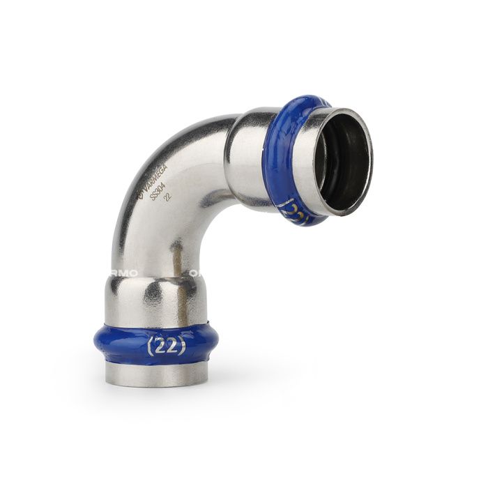 Угольник 90° двухраструбный Varmega Inox Press используется для соединения труб равных диаметров под углом 90 градусов. Для получения надежного неразъемного соединения трубы и фитинга потребуется специальный пресс-инструмент с насадками типа профиль «V». Трубы и пресс-фитинги из нержавеющей стали серии Varmega Inox Press предназначены для транспортирования жидкостей, применяемых в системах питьевого водоснабжения, низкотемпературных и высокотемпературных системах отопления и системах охлаждения. Трубы и фитинги могут применяться в качестве технологических трубопроводов для транспортирования жидкостей и газов, не агрессивных к материалу труб и уплотнителей фитингов. Особенности применения: - Запрещается использовать фитинги системы с уплотнительными кольцами из EPDM на трубопроводах, транспортирующих жидкие углеводороды. В таких случаях необходимо заменить кольца из EPDM на кольца из FPM (Viton). Кольца FPM приобретаются отдельно. - Запрещается использовать трубы и фитинги системы Varmega Inox Press в атмосфере, насыщенной парами хлора (бассейны с хлорированием воды и т. п.). Содержание хлоридов в рабочей среде не должно превышать значений, указанных в техническом паспорте. - Непосредственное соединение элементов из нержавеющей стали с оцинкованной сталью (арматура, соединители) может вызвать коррозию оцинкованной стали, для предотвращения коррозии необходимо применять разделяющий элемент из латуни или бронзы с длиной не менее 50 мм. - Трубопроводная система Varmega Inox Press включает в себя трубы из нержавеющей стали, которые соединяются между собой и присоединяются к арматуре/приборам с помощью пресс-фитингов из нержавеющей стали. - Монтаж фитингов производится пресс-инструментом с насадками типа профиль «V». - Фитинги стандартно комплектуются уплотнителями O-Ring из этилен-пропилен-диенового каучука EPDM. - Отдельно можно приобрести набор уплотнительных колец из FPM (Viton). Замена на кольца из Viton повышает температурную и химическую стойкость системы. Пресс-фитинги Varmega Inox Press имеют два уникальных уровня индикации: - Все раструбные пресс-фитинги оснащены синей термоусаживаемой пленкой, которая остается на неопрессованном фитинге и слетает, если фитинг уже опрессован. - Все уплотнения EPDM, установленные в пресс-фитинги Varmega Inoxpress, имеют специальную конструкцию, которая будет показывать неопрессованные соединения, они будут не герметичны (протекать) под давлением от 0,1 до 6,0 бар. Благодаря такой конструкции все неопрессованные соединения выявляются на этапе испытаний и легко исправляются без потери времени.