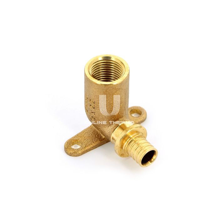 Угольник настенный (водорозетка) с длинным патрубком, с внутренней резьбой Rehau Rautitan RX+ с одной стороны имеет надвижное соединение для трубы, а с другой стороны фитинга находится внутреннее резьбовое соединение. Особенностью данного фитинга является наличие настенных креплений, которые позволяют зафиксировать угольник под ровным углом, а также удлиненный резьбовой патрубок. Этот фитинг, в первую очередь, используется для подключения смесителей, а также других элементов трубопровода. Для осуществления прочного неразъемного соединения трубы и фитинга потребуются надвижные гильзы соответствующих размеров и специальный монтажный инструмент. Материал фитинга: Бронза Максимальная рабочая температура: 95 °С Максимальное рабочее давление: 10 бар Цвет: Бронза