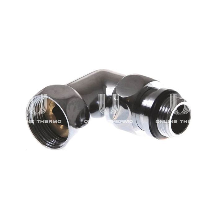 Соединение угловое - фитинг из хромированной латуни, предназначенный для сборки и монтажа полотенцесушителя. Резьбовой фитинг представляет собой муфту с накидной гайкой с одной стороны и штуцер со сгоном и упором с другой.