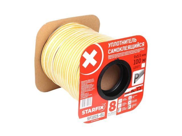 Уплотнитель 'P' белый 9х5,5мм 100м (сдвоенный профиль 2х50м) STARFIX