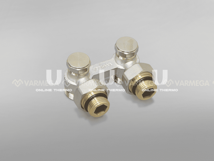 Узел нижнего подключения Varmega предназначен для подключения отопительных приборов с нижним расположением присоединительных штуцеров с межосевым расстоянием подсоединения 50 мм. Он используется в двухтрубных системах отопления с радиаторами, имеющими встроенные клапаны для перекрытия и регулирования отдельных радиаторов. Узлы изготавливаются в прямом и угловом исполнении. С помощью специальных переходников возможно подключение к штуцерам отопительного прибора с внутренней резьбой G 1/2 (переходник 1/2" x 3/4"EK). Переходники являются самоуплотняющимися. Узел может соединяться с медными, стальными, полимерными или металлополимерными трубами системы отопления с помощью адаптеров. Резьба: ISO228 (эквивалентно DIN259 и BS2779) Корпус: никелированная латунь UNI EN 12165 CW617N Материал прокладок и уплотнителей: EPDM и NBR Межосевое расстояние патрубков: 50 мм Нормативный срок службы: 30 лет Коэффициент Kvs для VM14001: 1.9 Коэффициент Kvs для VM14101: 1.5 Максимальная рабочая температура: 110 °С Максимальное рабочее давление: 10 бар Допустимая концентрация гликоля: 50% Присоединение к отопительному прибору с внутренней резьбой G 1/2: через переходник 1/2"M x 3/4"EK Присоединение к трубопроводу: 3/4"EK