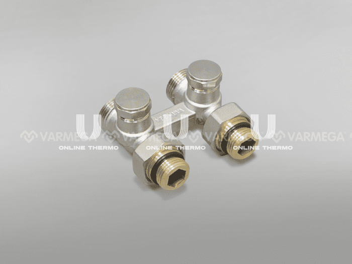 Узел нижнего подключения Varmega предназначен для подключения отопительных приборов с нижним расположением присоединительных штуцеров с межосевым расстоянием подсоединения 50 мм. Он используется в двухтрубных системах отопления с радиаторами, имеющими встроенные клапаны для перекрытия и регулирования отдельных радиаторов. Узлы изготавливаются в прямом и угловом исполнении. С помощью специальных переходников возможно подключение к штуцерам отопительного прибора с внутренней резьбой G 1/2 (переходник 1/2" x 3/4"EK). Переходники являются самоуплотняющимися. Узел может соединяться с медными, стальными, полимерными или металлополимерными трубами системы отопления с помощью адаптеров. Резьба: ISO228 (эквивалентно DIN259 и BS2779) Корпус: никелированная латунь UNI EN 12165 CW617N Материал прокладок и уплотнителей: EPDM и NBR Межосевое расстояние патрубков: 50 мм Нормативный срок службы: 30 лет Коэффициент Kvs для VM14001: 1.9 Коэффициент Kvs для VM14101: 1.5 Максимальная рабочая температура: 110 °С Максимальное рабочее давление: 10 бар Допустимая концентрация гликоля: 50% Присоединение к отопительному прибору с внутренней резьбой G 1/2: через переходник 1/2"M x 3/4"EK Присоединение к трубопроводу: 3/4"EK