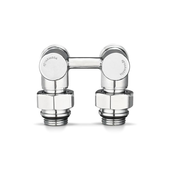 Узлы Varmega предназначены для нижнего подключения отопительных приборов в системах отопления к стальным, медным, полипропиленовым, пластиковым и металлополимерным трубам. Для радиаторов с межосевым расстоянием 50 мм используются стандартные двойные узлы, одинарные узлы используются для любых радиаторов с нефиксированным межосевым расстоянием. Клапаны имеют вентильную вставку, с помощью которой можно полностью отключить отопительный прибор от системы. Открытие и закрытие осуществляется с помощью ключа типа SW. Прямой радиаторный узел позволяет подключить радиатор к трубам, выходящим из пола, а угловой узел – к трубам, выходящим из стены. На патрубках радиаторов с резьбой 3/4" узлы крепятся при помощи накидных гаек, в случае применения радиаторов с присоединительными отверстиями, имеющими резьбу 1/2”, узлы устанавливаются через переходные адаптеры. Виды и модификации узлов: • Одинарный в угловом и прямом исполнении, предназначен для подключения радиаторов к двухтрубной системе. Для 1 радиатора требуется 2 одинарных узла. • Сдвоенный с межосевым расстоянием 50 мм в угловом и прямом исполнении, предназначен для подключения радиаторов к двухтрубной системе;