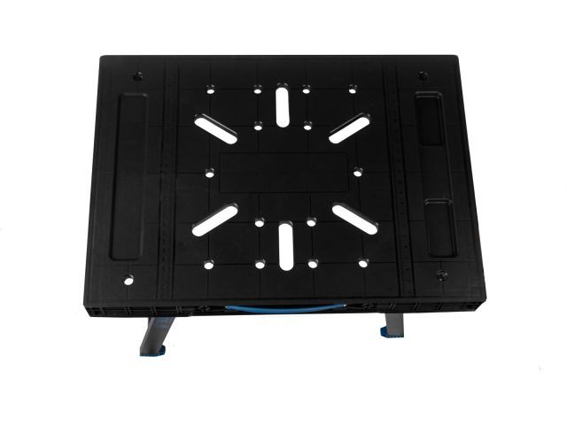 Верстак предназначен для выполнения столярных, слесарных, монтажно-сборочных и других работ. Обладает высокой грузоподъемностью, а также за счет наличия дополнительных отверстий на столешнице, подходит для работы с пистолетными струбцинами. Одним из главных преимуществ является быстроскладываемая конструкция: чтобы привести верстак в рабочее состояние понадобится не более 30 секунд. Данная модель верстака обладает специальной ручкой для переноски.