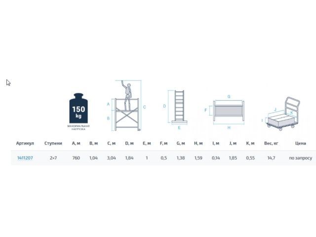 Вышка-тура 2x7 серия NV 1411 Новая высота