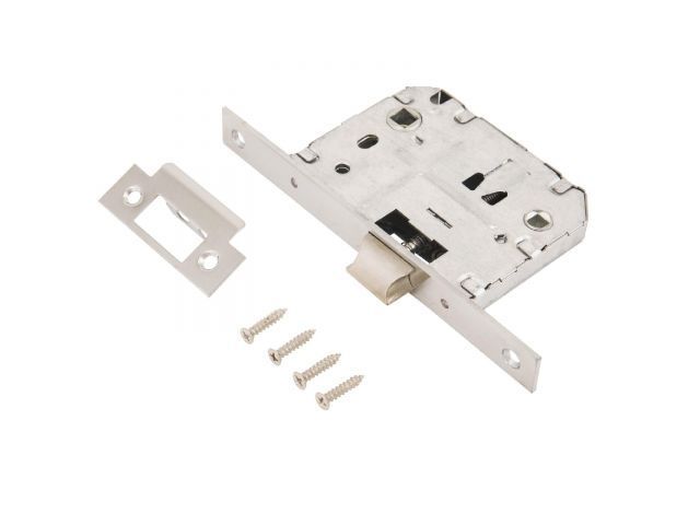 Универсальная защёлка врезная для установки на деревянные межкомнатные двери. Материал - сталь, гальваническое покрытие.Под ручку с квадратом 8 мм и сантехническую завертку с квадратом 6 мм. Удаление ключевого отверстия - 47 мм. Межосевое расстояние - 70 мм. Прямоугольная торцевая планка. Ширина планки - 18мм. Габариты корпуса - 96х71х12 мм. В комплекте - защелка, саморезы, ответная планка и белый пластиковый вкладыш к ней.