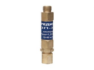 Затвор предохранительный ЗП-3К (кислород) Затворы ЗП-3 предохранительные предназначены для предотвращения прохождения обратного удара (пламени), возникающего при газопламенной обработке металлов, в защищаемое оборудование (баллон). Особенности конструкции -Модификации на выход редуктора: -ЗП-3К-111: входной диаметр М16х1,5, выходной диаметр М16х1,5 -ЗП-3К-113: входной диаметр М16х1,5, выходной диаметр Ф9,0 и Ф6,3 мм -Модификации на вход резакагорелки: -ЗП-3К-211: входной диаметр М16х1,5, выходной диаметр М16х1,5 -ЗП-3К-231: входной диаметр Ф9,0 и Ф6,3 мм, выходной диаметр М16х1,5 -Модификации в разрыв рукава: -ЗП-3К-333: входной диаметр Ф9,0 и Ф6,3 мм, выходной диаметр Ф9,0 и Ф6,3 мм