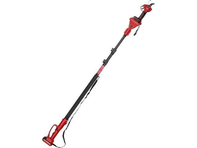 Аккумуляторный секатор идеально подходит для комплексного ухода за садом: обрезки ветвей кустарников и деревьев. Кроме того секатор обладает высокой режущей способностью благодаря острому ножу из твердой стали. Бесщёточный двигатель делает инструмент компактным и значительно продлевает срок его службы. К тому же для удобства пользователя предусмотрена трехпозиционная электронная регулировка толщины реза (до 28 мм). Прорезиненная рукоятка добавит дополнительный комфорт при работе. Имеет встроенный дисплей, отображающий процент заряда батареи. Обладает высокой скоростью работы, где один цикл занимает не более 1 секунды. Также модель совместима с телескопической штангой (идет в комплекте с изделием). Поставляется с телескопической штангой, аккумулятором и зарядным устройством.
