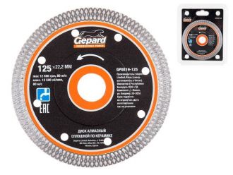 Алмазный круг 125х22 мм по керамике сплошн. тонкий GEPARD(сухая и мокрая резка, тонкий рез 1.2мм, диск)