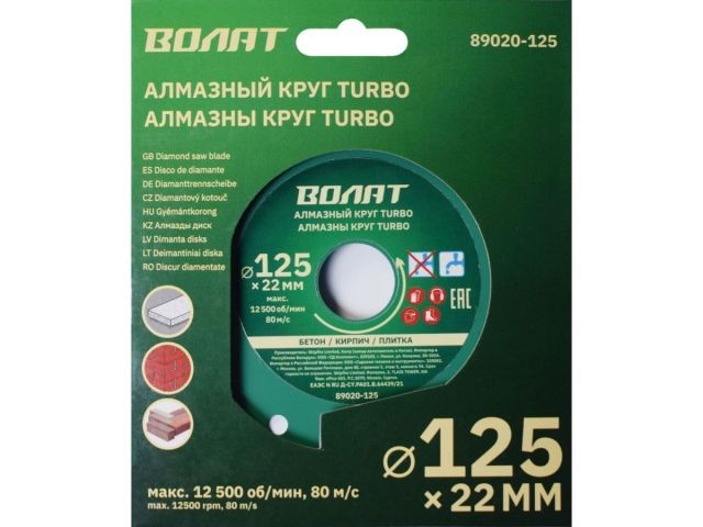 Алмазный круг 125х22 мм универс. Turbo ВОЛАТ(сухая и мокрая резка)