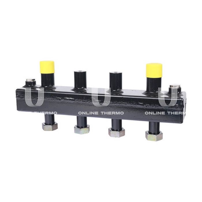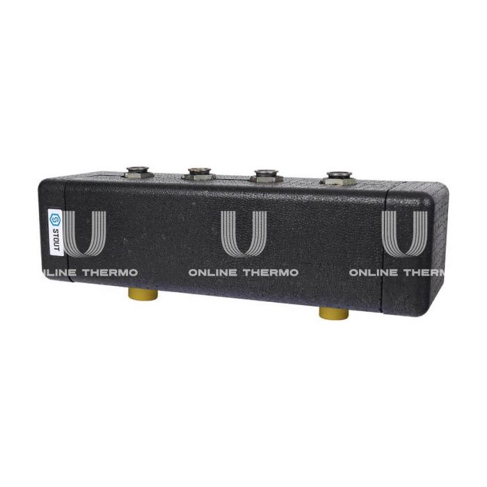 Распределительный коллектор Stout представляет собой одну стальную коробчатую трубу прямоугольного сечения, к которой снизу и сверху соосно приварены парные патрубки (входные и выходные). Внутри трубы выполнены фигурные перегородки для разграничения прямого и обратного потоков теплоносителя и организации распределения его между всеми выходными патрубками коллектора. Зигзагообразная форма перегородок позволяет расположить патрубки вдоль одной оси коллектора. Стальной распределительный коллектор серии SDG-0018 со встроенным гидравлическим разделителем и верхним расположением выходных патрубков, предназначенный для пропорционального распределения тепловых потоков, обеспечивает гидравлическое разделение между первичным и вторичным контурами. Верхние патрубки коллектора оснащены накидными гайками для обеспечения быстрого монтажа насосных узлов и элементов гидромодуля, а нижние имеют наружную резьбу. Благодаря защите коллекторов изоляционным материалом, значительно снижаются тепловые потери, снижаются риски получения ожогов при обслуживании системы. Вне зависимости от конструктивных особенностей, надежность крепления коллекторов к несущим элементам зданий, обеспечивается при помощи кронштейнов, входящих в комплект к каждому коллектору. Распределительные коллекторы Stout являются составляющим элементом групп быстрого монтажа Stout. Предназначены для приема теплоносителя от источника тепловой энергии и его распределения между системами теплопотребления здания. Коллекторы являются основой для соединения всех остальных элементов между собой: гидравлического разделителя, насосных узлов и пр. Модификации коллекторов позволяют компоновать гидромодули самой различной конфигурации. Полная заводская готовность распределительных коллекторов и других элементов обеспечивает быстрый и легкий монтаж системы.
